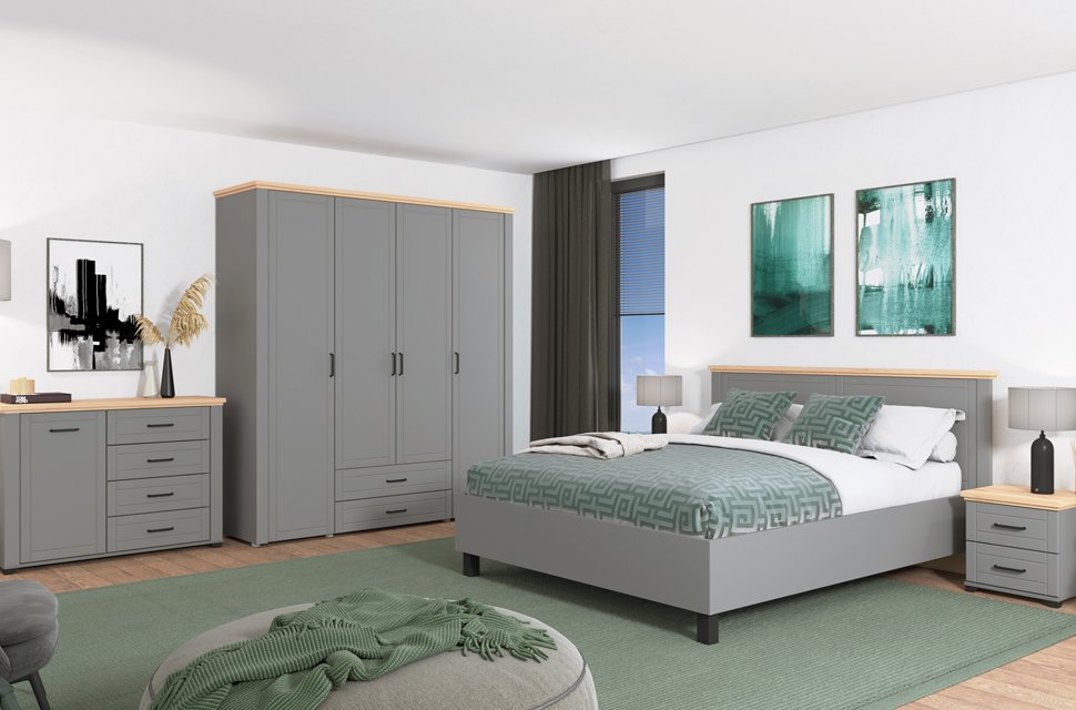 Spavaća soba VALENCIA je dostupna u dve kombinacije dekora. Topliju estetiku enterijeru daje sinergija artisan hrasta, opak bele i bele mat folije, dok kombinacija dekora artisan hrast, grafit siva i siva mat folija unose u prostor suptilniju, monohromatsku notu. Spavaća soba VALENCIA sadrži sve elemente koji doprinose maksimalnoj udobnosti, funkcionalnosti i stilskoj usklađenosti. Dostupan benefit koji se može implementirati u oba modela garderobera VALENCIA su usporivači kod kliznog mehanizma.