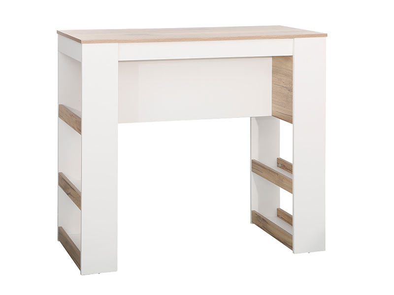 Tačan naziv dezena je: konstrukcija iverica bela, ploča iverica natur. Barski sto VALERIA daće savremen enterijerski pečat ambijentu u kom se nalazi. Idealno će se uklopiti u trpezarijski prostor koji je u sklopu kuhinje.