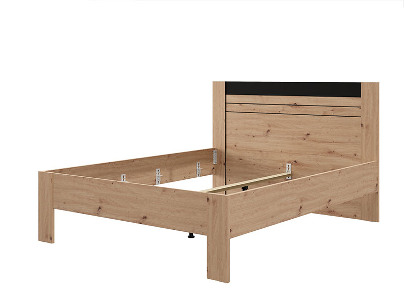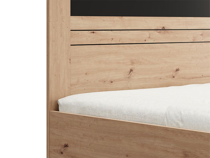 Bračni krevet BITINIA 160, izrađen u kombinaciji artisan hrasta i crnog drvo dekora, doprinosi toplom i modernom izgledu spavaće sobe, pružajući stabilnu i funkcionalnu osnovu za odmor.