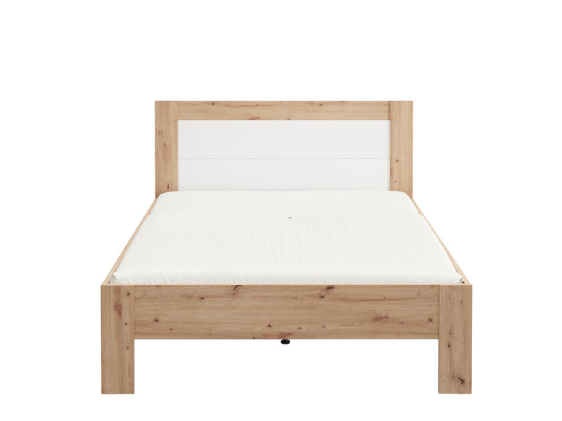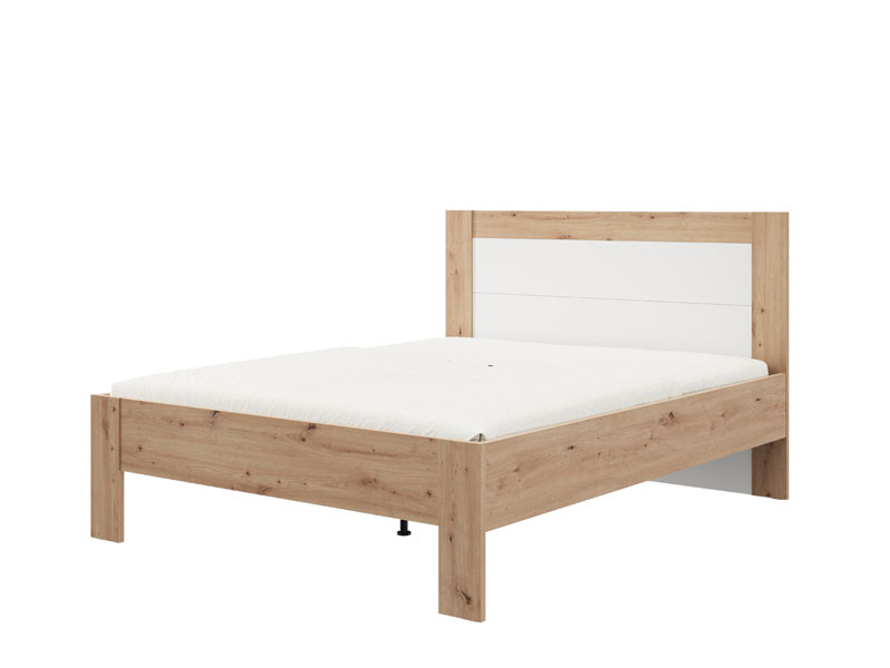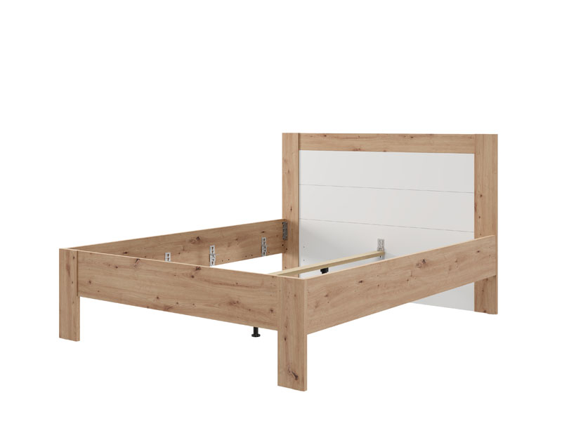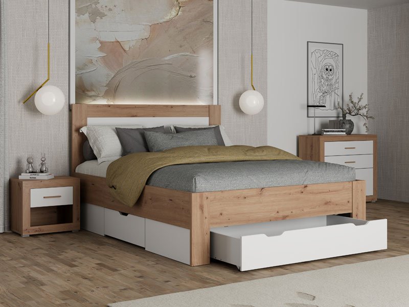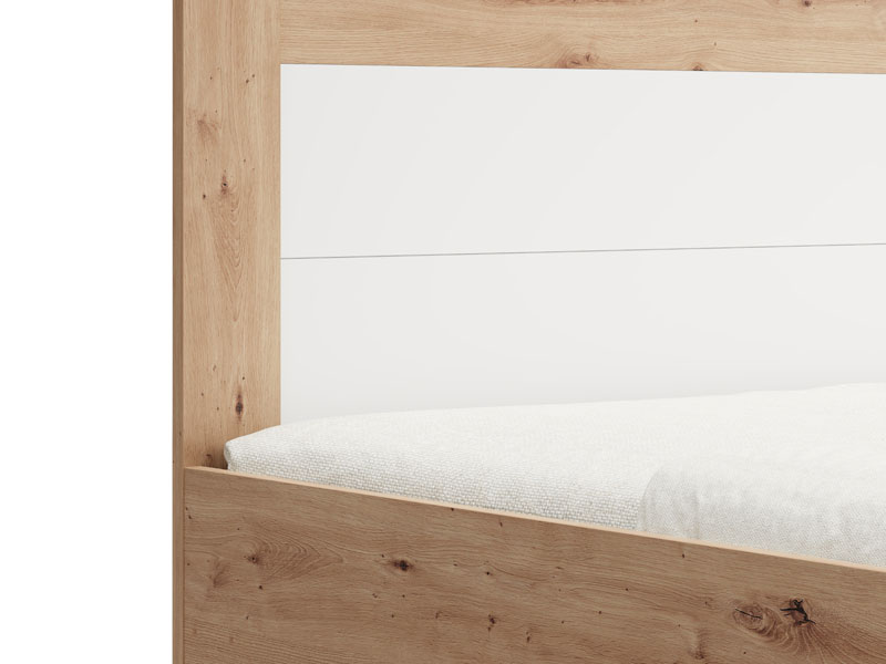 Bračni krevet CARTENA 160, izrađen u kombinaciji opak belog dekora, artisan hrasta i artisan hrast folije, doprinosi modernom i elegantnom izgledu spavaće sobe, ističući kontrast materijala i preciznu geometrijsku liniju dizajna.