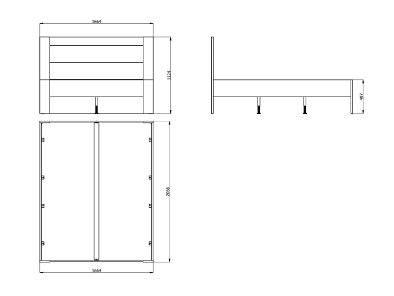 Krevet je dizajniran bez poda i dušeka, predviđen za dušek dimenzija 160 × 200 cm, uz mogućnost dodavanja jedne fioke, seta od dve fioke ili kompletnog seta fioka, prema individualnim potrebama i organizaciji prostora.