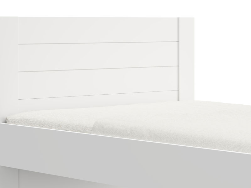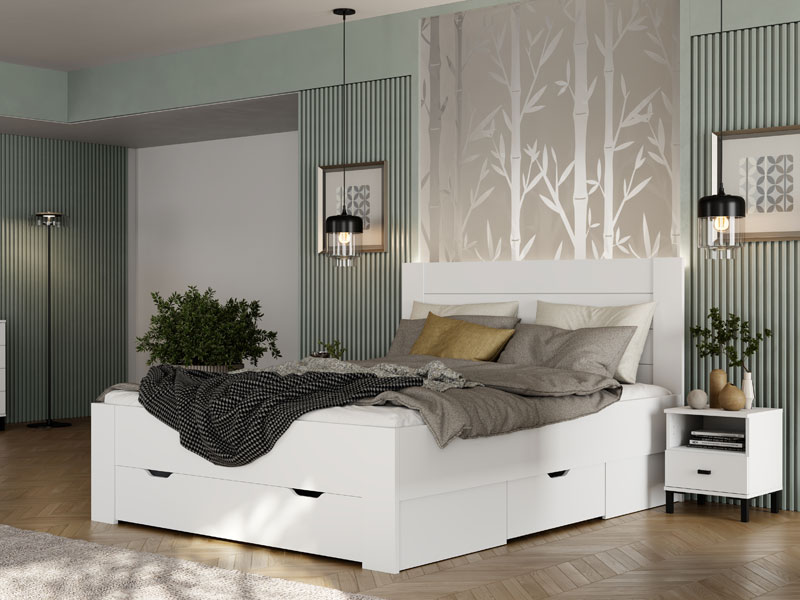 Bračni krevet SALAMIS 160, izrađen u elegantnom opak bela dekoru, doprinosi smirenom i modernom izgledu spavaće sobe, pružajući stabilnu i funkcionalnu osnovu za odmor.