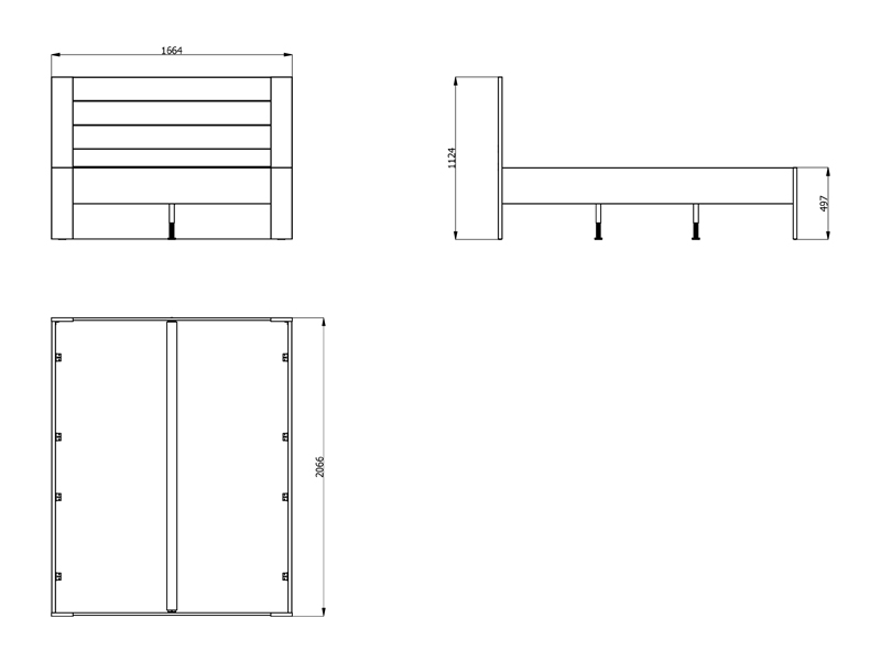 Krevet je dizajniran bez poda i dušeka, predviđen za dušek dimenzija 160 × 200 cm, a upotrebni prostor se može dodatno organizovati kroz jednu fioku, set od dve fioke ili set više fioka, prema individualnim potrebama.