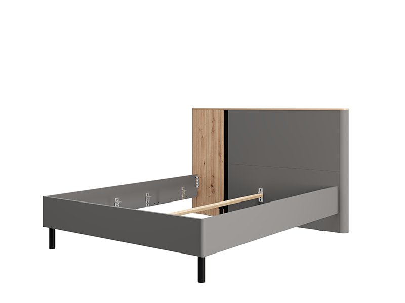 Bračni krevet SINOP 160, izrađen u kombinaciji dekora artisan hrasta, artisan hrast folije, grafit sivog i crnog drvo dekora, doprinosi modernom i sofisticiranom izgledu spavaće sobe, naglašavajući kontrast i jasno definisanu geometrijsku liniju dizajna.