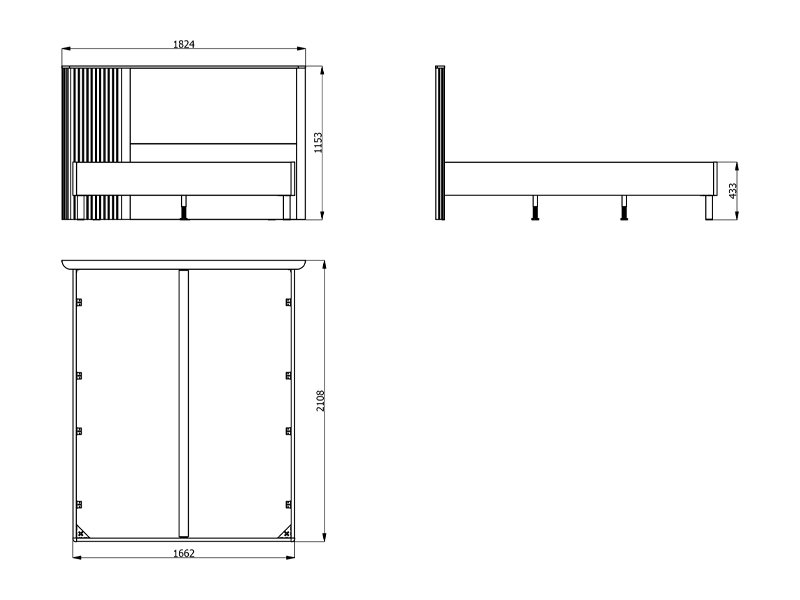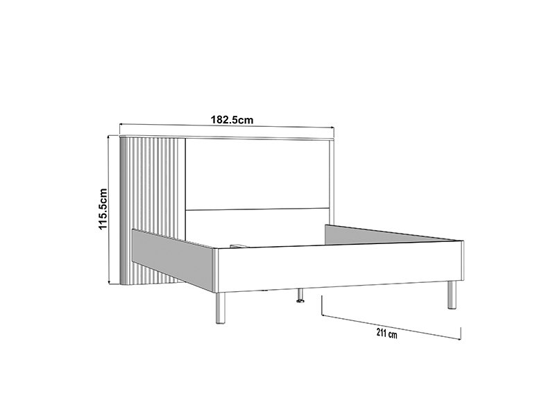 Krevet je predviđen za dimenziju dušeka 160 cm x 200 cm i dolazi bez poda i dušeka, pružajući mogućnost prilagođavanja sopstvenim potrebama. Njegova funkcionalna i pregledna forma omogućava lako postavljanje i organizaciju prostora oko kreveta.