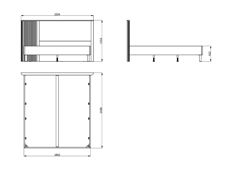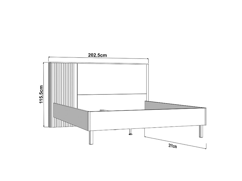 Krevet je predviđen za dimenziju dušeka 180 cm x 200 cm i dolazi bez poda i dušeka, pružajući mogućnost prilagođavanja sopstvenim potrebama. Njegova funkcionalna i pregledna forma omogućava lako postavljanje i organizaciju prostora oko kreveta.