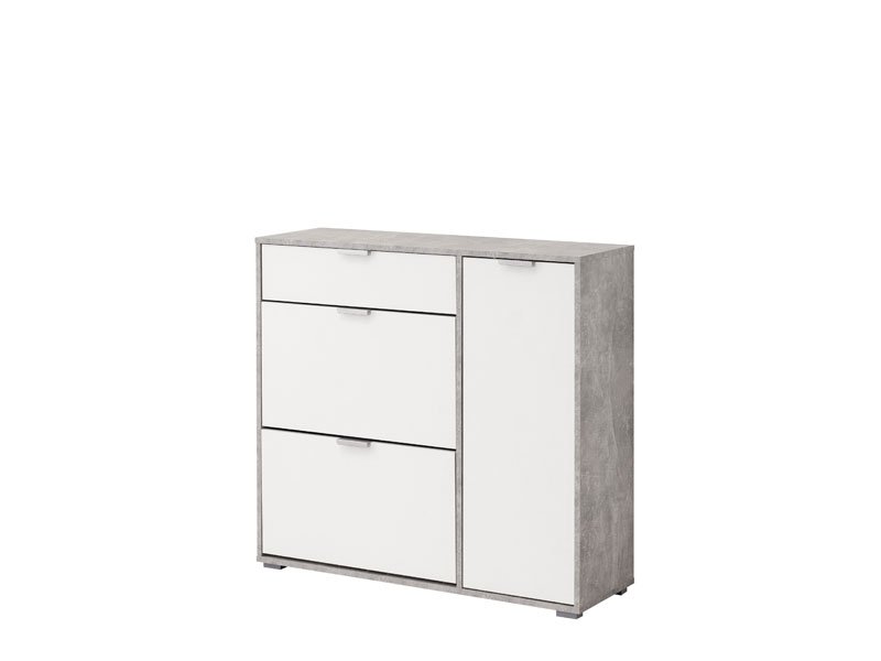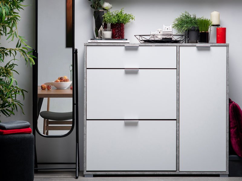 Cipelar ARCO 2, u opak belom dezenu, idealno je rešenje za uklapanje u prostore različitih dimenzija. Ovaj model poseduje dva segmenta za odlaganje obuće, praktičnu fioku i desno pozicioniran deo sa dve police.
