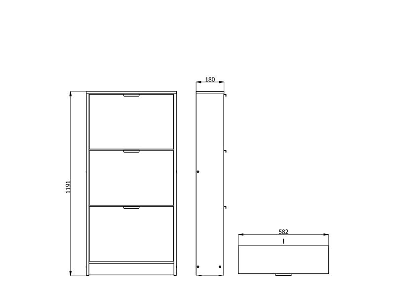 Cipelar BASE 13, u opak belom dezenu, poseduje tri police za odlaganje sezonske obuće, a zahvaljujući svojim dimenzijama funkcionalno je rešenje za uređenje predsoblja manjih dimenzija.