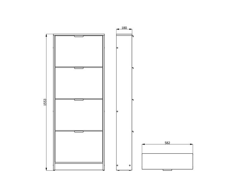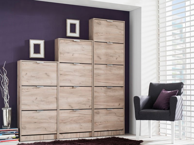 Cipelar BASE 14, u sivom hrast dezenu, poseduje četiri police za odlaganje sezonske obuće, a zahvaljujući svojim dimenzijama funkcionalno je rešenje za uređenje predsoblja manjih dimenzija.