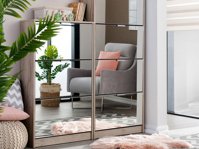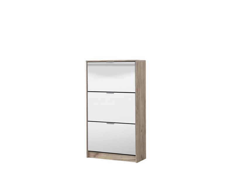 Cipelar HUGO 23 OG, u kombinaciji ogledala i korpusa u dekoru sivog hrasta, poseduje tri segmenta za odlaganje sezonske obuće, a zahvaljujući svojim dimenzijama i dvorednoj organizaciji, predstavlja veoma efektno funkcionalno rešenje za uređenje predsoblja skromnijih dimenzija.