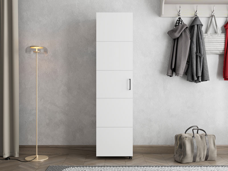 Cipelar ISLAY 46 1K h185, u kašmir dekoru sa hotstamping prugama, praktično je i elegantno rešenje za predsoblje. Unutrašnjost ovog jednokrilnog cipelara sa zatvorenim policama omogućava preglednu i funkcionalnu organizaciju obuće.