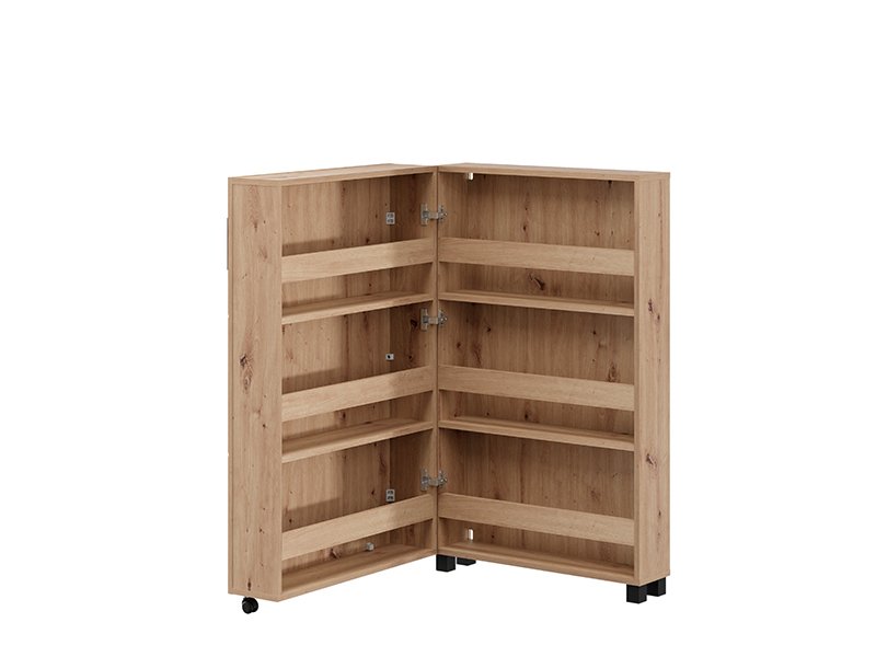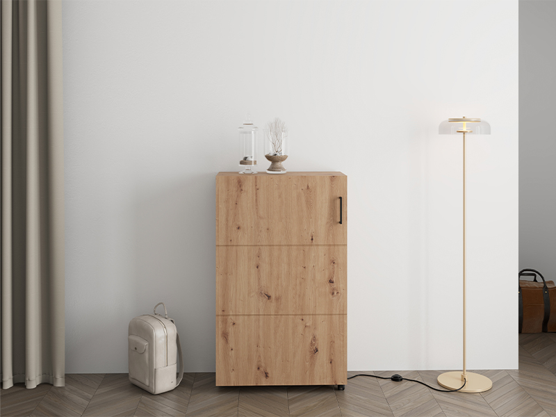 Cipelar ISLAY 91 2K h113, u dekoru artisan hrasta sa hotstamping prugama, praktično je i elegantno rešenje za predsoblje. Unutrašnjost ovo jednokrilnog cipelara, poput komode sa zatvorenim policama, omogućava preglednu i funkcionalnu organizaciju obuće.