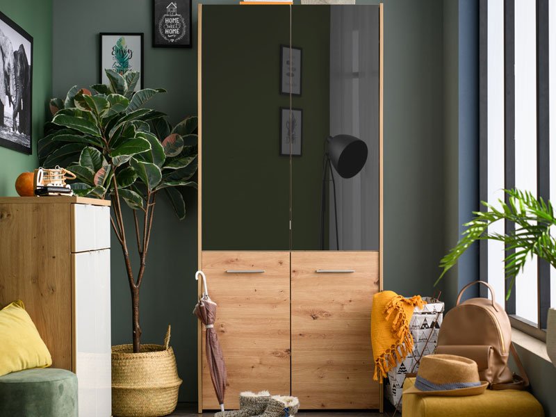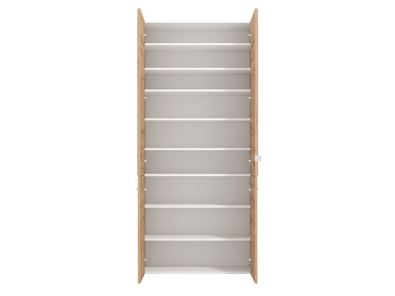 Model cipelara MENORICA 2K 2OG, u artisan hrast dekoru, obogaćen je sa dva praktična ogledala u gornjem delu elementa. U unutrašnjosti se nalaze zatvorene police za odlaganje obuće, koje pružaju mogućnost racionalne organizacije predsoblja.