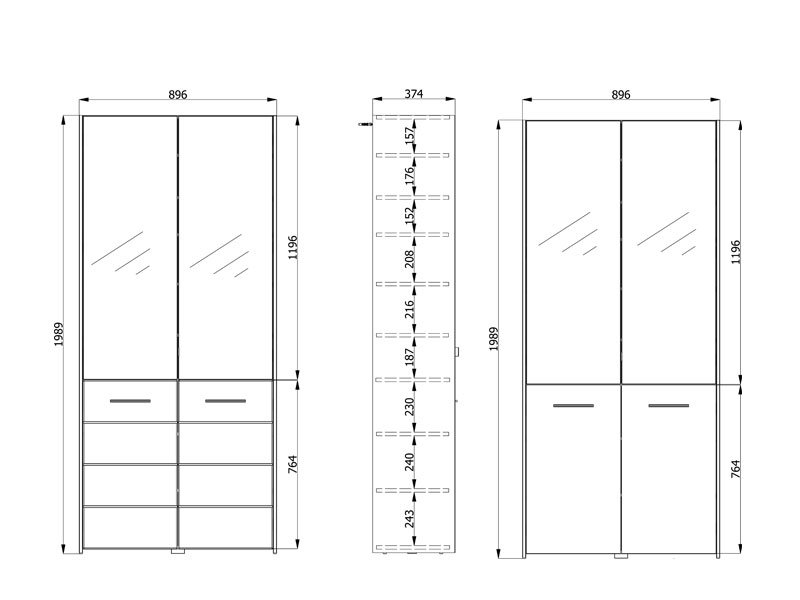 Model cipelara MENORICA 2K 2OG, u dekoru sivog hrasta, obogaćen je sa dva praktična ogledala u gornjem delu elementa. U unutrašnjosti se nalaze zatvorene police za odlaganje obuće, koje pružaju mogućnost racionalne organizacije predsoblja.