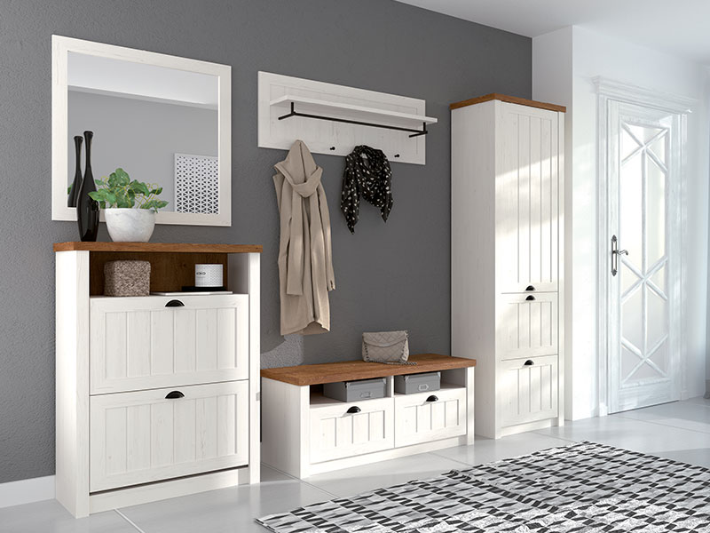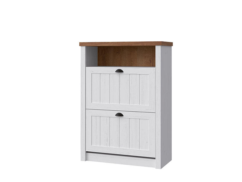 Tačan naziv dezena: korpus mdf Sosna andersen, front mdf Sosna andersen. Cipelar PROWANSJA SNB poseduje otvorene i zatvorene segmente i oplemenjen je bogatom teksturom drveta. Cipelar je deo istoimene kolekcije.