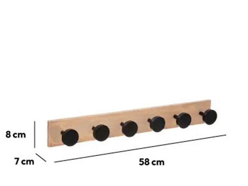 Čiviluk za odeću sa 6 kukica FIVE 58x7x8cm