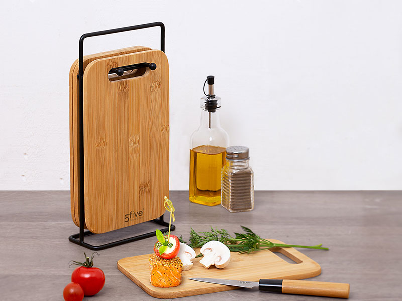 Svaka kuhinja, u kom god stilu da je uređena, podrazumeva podlogu na kojoj će se pripremati namirnice za sve specijalitete, a daska za sečenje + stalak 4/1 FIVE je odličan predlog za vaš dom. Zbog svog jednostavnog izgleda i natur boje, ove daske će se uklopiti u sve ambijente, vaš obrok će biti spreman, a ujedno će i radna površina biti zaštićena.