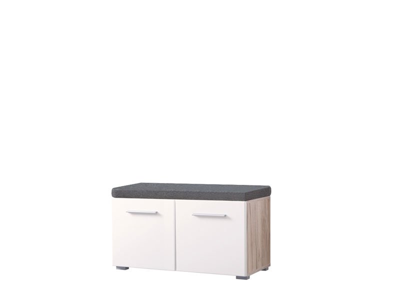 Element predsoblja BENY KOM, u sivom hrast dezenu sa belom lak folijom, poseduje praktičan zatvoren deo za odlaganje obuće, kao i tapaciranu površinu. Može se kombinovati sa istoimenim elementima koji zaokružuju enterijersku priču ulaza u vaš dom.
