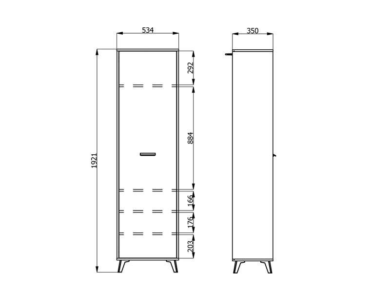 Element predsoblja UMBRIA P1 u sivom hrast dezenu obogaćenom crnim funkcionalno-dekorativnim detaljima uneće u vaše predsoblje osobine rustičnosti i elegancije. Unutrašnjost se sastoji od nosača vešalica na izvlačenje i četiri police za odlaganje. Može se kombinovati sa drugim elementima kolekcije za predsoblje UMBRIA, koji zaokružuju enterijersku priču ulaza u vaš dom.