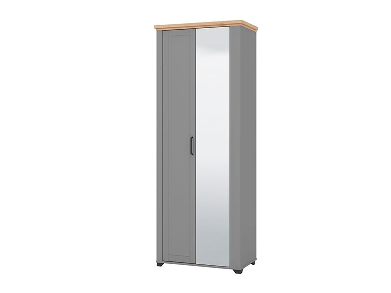 Element predsoblja VALENCIA P2 OG u kombinaciji artisan hrasta, grafit sive i sive mat folije, sa ogledalom na jednom krilu, unosi u prostor suptilniju, monohromatsku notu, koja dolazi kroz pravilne dizajnerske linije. Frontovi su obogaćeni crnim ručicama jednostavnog dizajna, a koje su usklađene sa dizajnerskom linijom cele kolekcije. Unutrašnjost se sastoji od nosača vešalica i tri police za odlaganje. Deo je istoimenog sistema elemenata za opremanje ambijenta predsoblja, koji odlikuju funkcionalnost i praktičnost kojoj doprinosi kako veliki broj elemenata u sistemu, tako i odlična organizacija prostora za odlaganje.