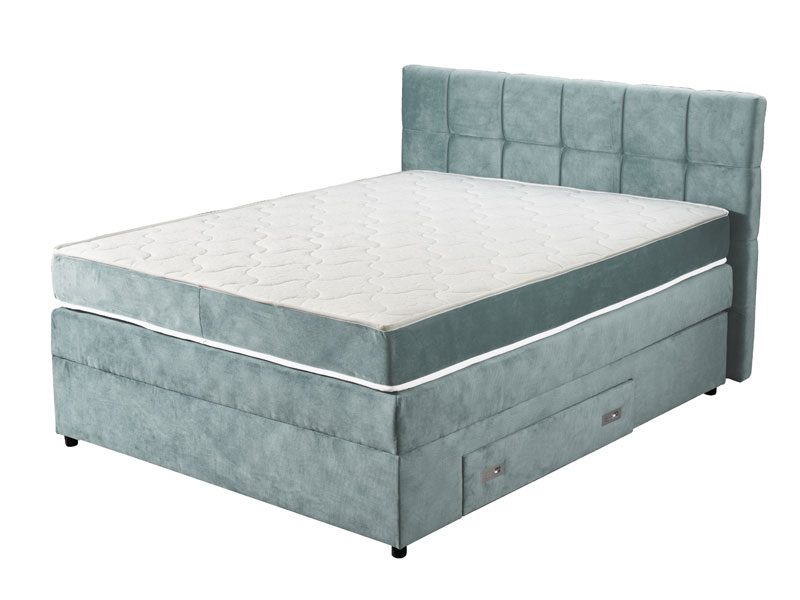 Tačan naziv dezena: uzglavlje/ram štof mint riviera 34, dušek platno bela Francuski ležaj GALA, zahvaljujući tapaciranom okviru i uzglavlju ambijent čini elegantnijim i komfornijim. Francuski ležaj GALA je takozvani „box spring“ sistem tj. sistem „dušek na dušek“ čime nudi veću trajnost i udobnost u odnosu na druge dušeke. Poseduje i dve fioke za odlaganje posteljine.
