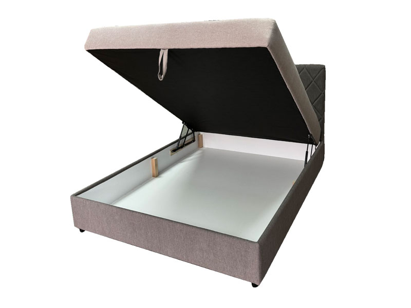 Tačan naziv dezena : uzglavlje/ram štof braon ronda 20, dušek štof bež malmo 08. Francuski ležaj GALIA, zahvaljujući tapaciranom okviru i uzglavlju ambijent čini elegantnijim i komfornijim. Podnica francuskog ležaja gala se lako podiže zahvaljujući mehanizmu sa makazama,a poseduje i dve kutije za odlaganje posteljine.