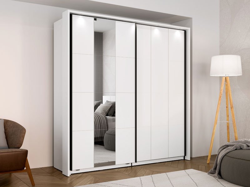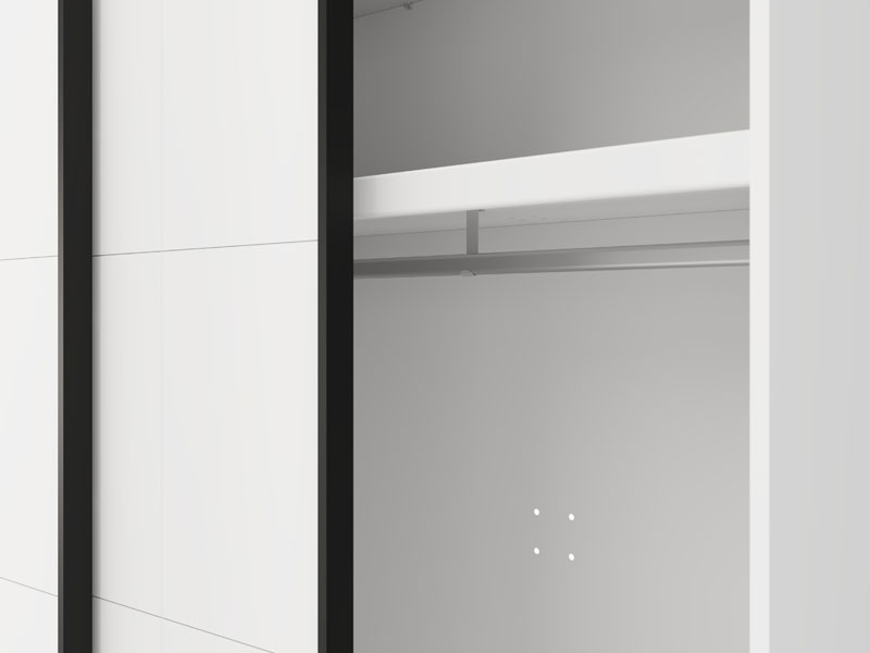 Garderober SALAMIS 200 OG h205 nudi mogućnost ugradnje dodatnih polica radi bolje organizacije prostora, kao i opciju usporivača kliznog mehanizma za tiho i komforno korišćenje. Takođe, postoji mogućnost dodavanja rasvete, koja unapređuje funkcionalnost i vizuelni doživljaj garderobera.