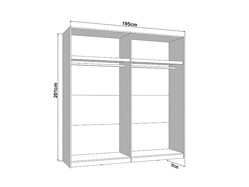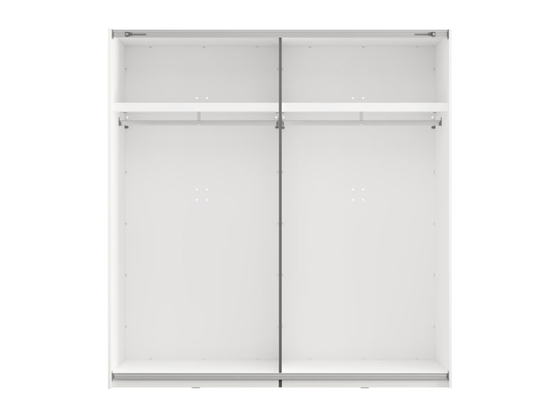 Garderober SALAMIS 200 OG h205, izrađen u elegantnom opak bela dekoru, doprinosi smirenom i sofisticiranom izgledu spavaće sobe. U svojoj osnovnoj formi, upotrebni prostor garderobera čine dve garderobne šipke, koje omogućavaju pregledno i praktično odlaganje garderobe.