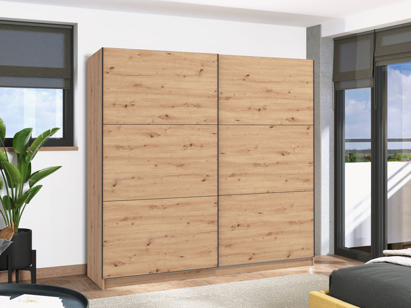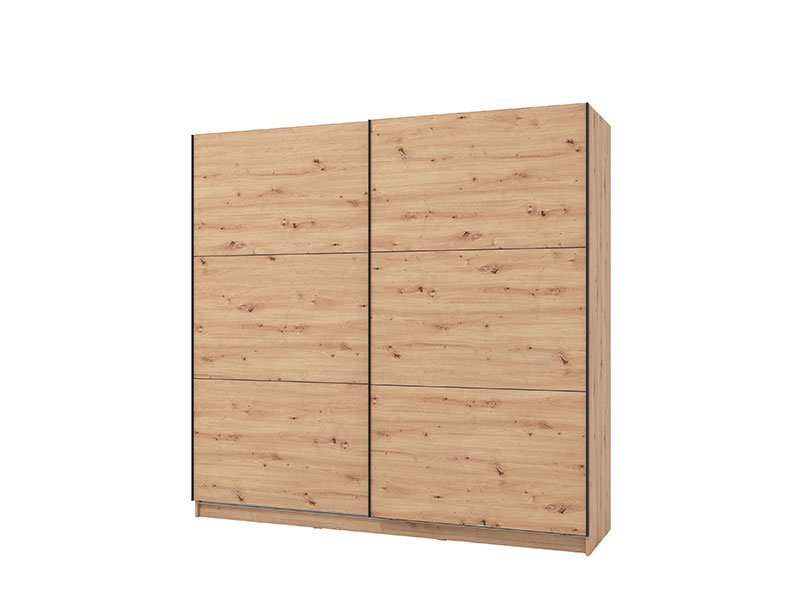 Garderober SIERRA 220 u artisan hrast dekoru, predstavlja model garderobera savremenog dizajna i velike praktične upotrebne vrednosti. Unutrašnjost se sastoji od segmenta sa policama u levom i desnom delu, kao i segmenta sa garderobnom šipkom u središnjem delu. Poseban benefit ovog modela je klizni mehanizam koji doprinosi ekonomičnoj organizaciji raspoloživog prostora. Poseduje mogućnost ugradnje usporivača kod kliznog mehanizma koji dodatno doprinose sigurnosti i funkcionalnosti.