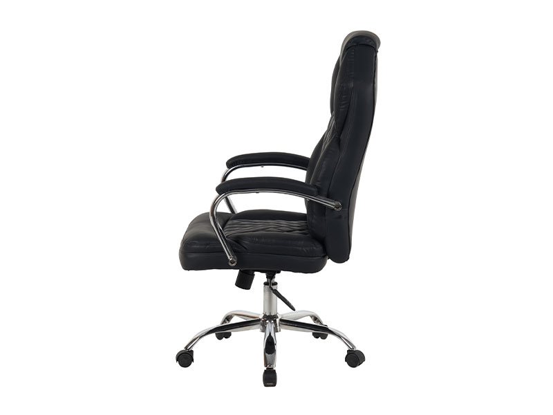 Tačan naziv dezena : sedište / naslon / rukonaslon eko koža crna. Kancelarijska fotelja TIGER nudi visok nivo udobnosti i svojim oblikom koji prati telo i njegove pokrete. Poseduje mehanizam za ljuljanje, podizanje i rotiranje stolice što je čini odličnim saveznikom u vašem radnom kutku.