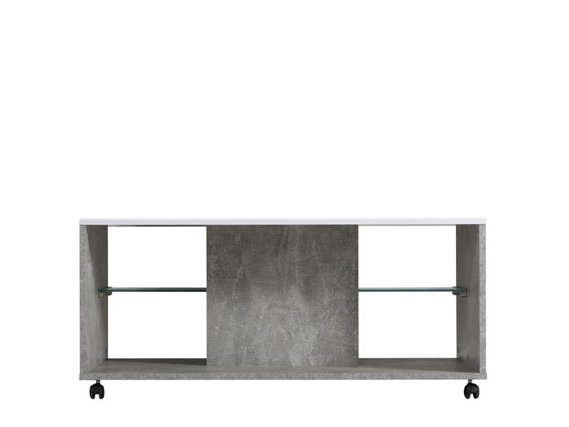 Klub sto BERT, u dekoru betona sa belom lak folijom, poseduje praktične i estetske efektne staklene police ispod radne površine pogodne za odlaganje omiljenih knjiga ili časopisa. Klub sto BERT doprinosi savremenom tematskom konceptu uređenja dnevnog boravka.