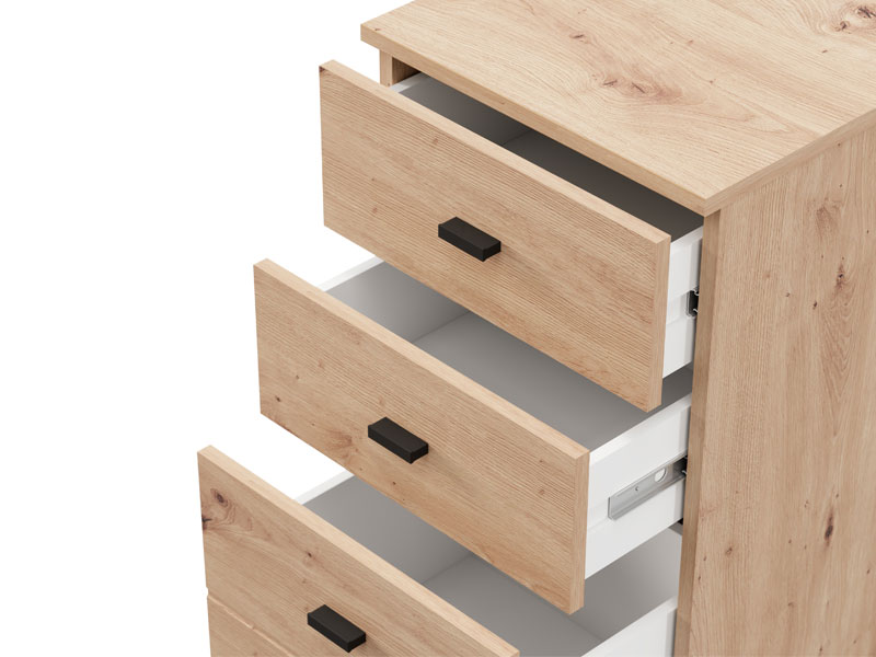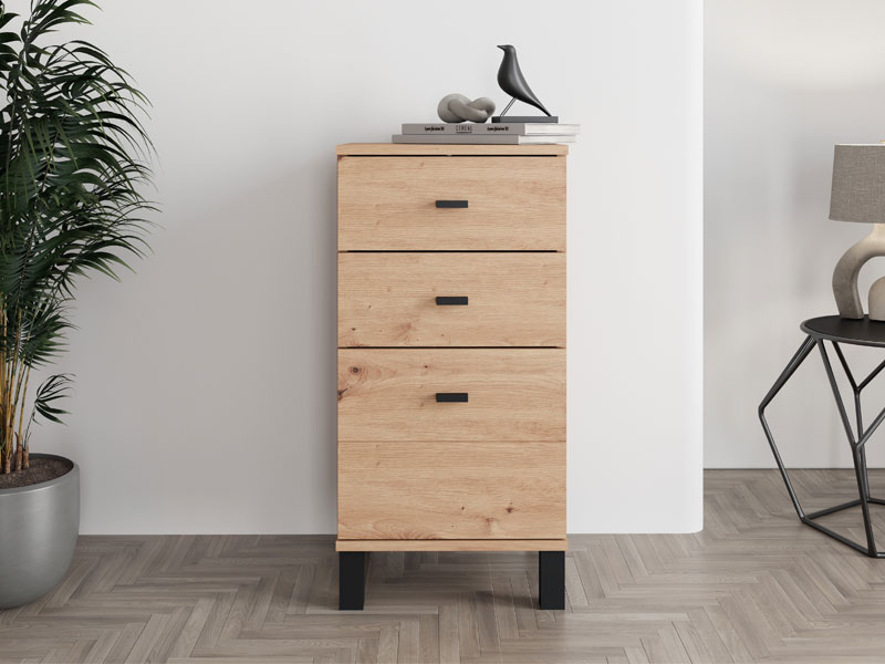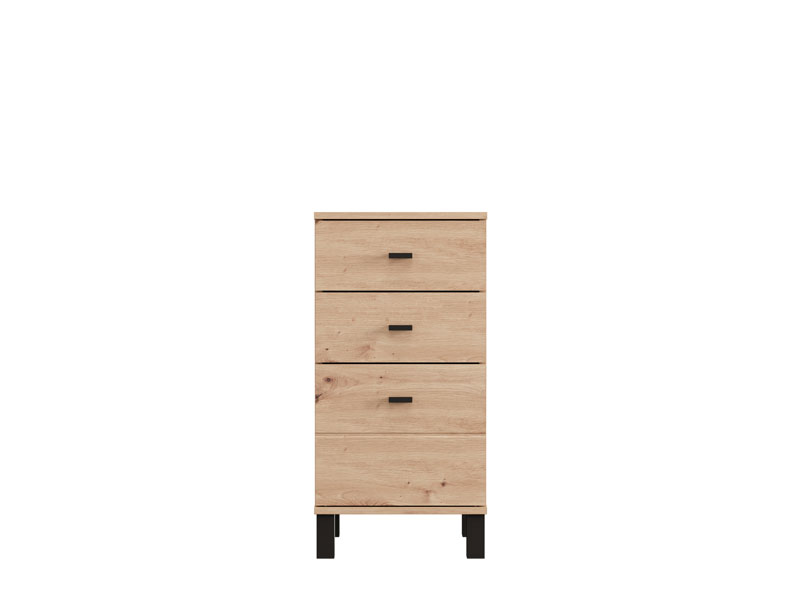 Komoda ALMOND 38 3F, u dekoru artisan hrasta, je uži model koji unosi toplinu i prijatnu atmosferu u prostor, uz funkcionalan upotrebni prostor kroz tri fioke, od kojih je jedna dublja. Idealna je kao dodatni komad nameštaja u predsoblju, dnevnoj sobi, spavaćoj sobi ili dečijoj sobi, gde kombinuje praktičnost i toplinu enterijera.