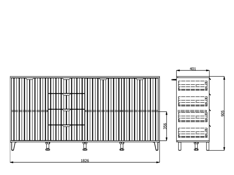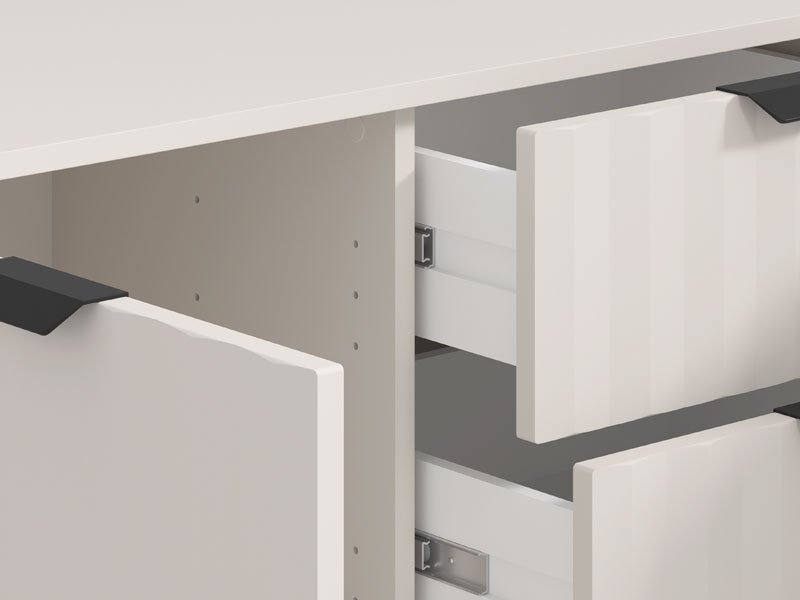 Odlično raspoređen upotrebni prostor ove komode čine tri zatvorena pregradna dela i četiri praktične fioke.