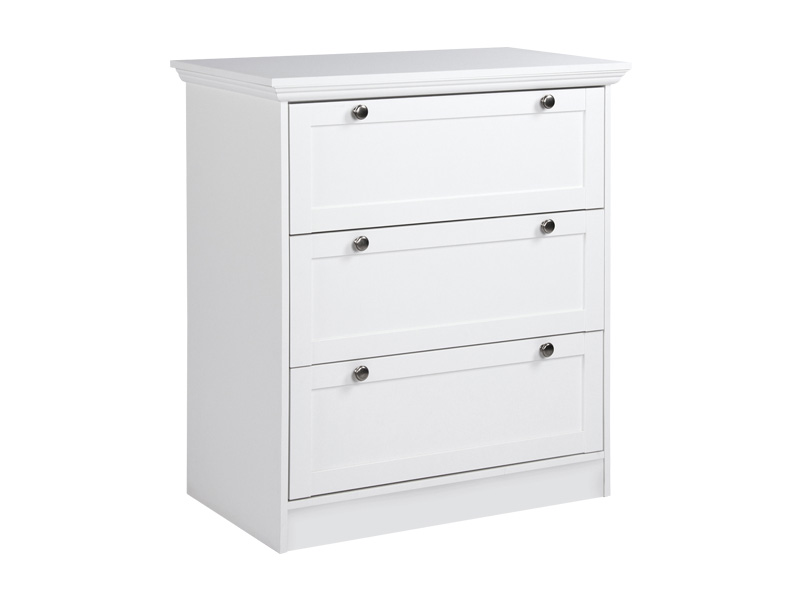 Tačan naziv dezena: konstrukcija iverica bela, front mdf bela. Komoda LANDWOOD 3, idealno će se uklopiti u ambijent vaše dnevne sobe.