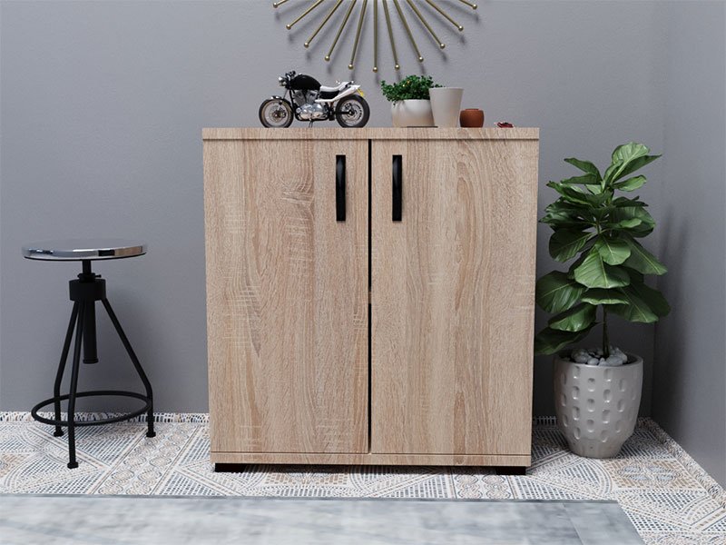 Tačan naziv dezena: konstrukcija / front iverica sonoma. Komoda LENY 2V se sastoji od zatvorenog pregradnog dela smeštenog u dva krila. Zahvaljujući praktičnosti lako se uklapa u sve ambijente savremenog doma.