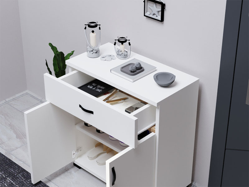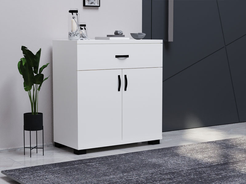 Tačan naziv dezena: korpus / front iverica bela. Komoda LENY 2V1F se sastoji od kombinacije jedne fioke i zatvorenog pregradnog dela. Svojim estetskim karakteristikama lako se uklapa u ambijente doma u zavisnosti od toga gde vam je potrebno dodatno mesto za odlaganje.
