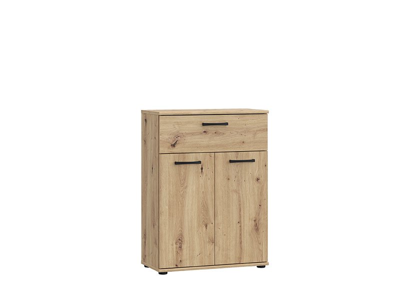 Tačan naziv dezena: korpus/front iverica artisan. Komoda NIKO 2V1F se sastoji od kombinacije jedne fioke i zatvorenog pregradnog dela. Svojim estetskim karakteristikama lako se uklapa u ambijente doma u zavisnosti od toga gde vam je potrebno dodatno mesto za odlaganje.