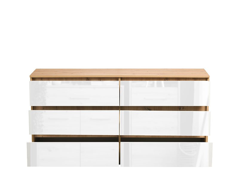 Tačan naziv dezena: korpus iverica artisan hrast, front iverica bela. Komoda SEA 6F dizajnirana je tako da zahvaljujući upotrebnom prostoru koji obezbeđuje šest prostranih fioka, spada u elemente sa velikom upotrebnom vrednošću. Komoda SEA 6F je pogodna za opremanje predsoblja, dnevne zone ili spavaće sobe.