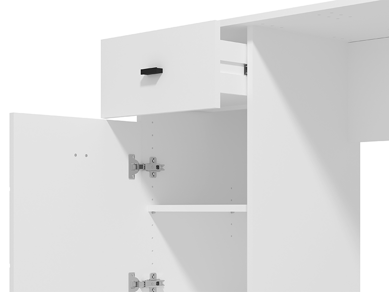 Kompjuter sto DIOFANT 1F1V, u opak belom dekoru, odlikuje se minimalističkim i modernim dizajnom. Pored radne površine, upotrebni prostor čine i jedna manja fioka i pregradni zatvoreni deo, koji omogućavaju praktično odlaganje. Zahvaljujući kompaktnim dimenzijama i neutralnoj estetici, sto DIOFANT 1F1V predstavlja neizostavan element za funkcionalno i pregledno uređenje radne ili dečije sobe.