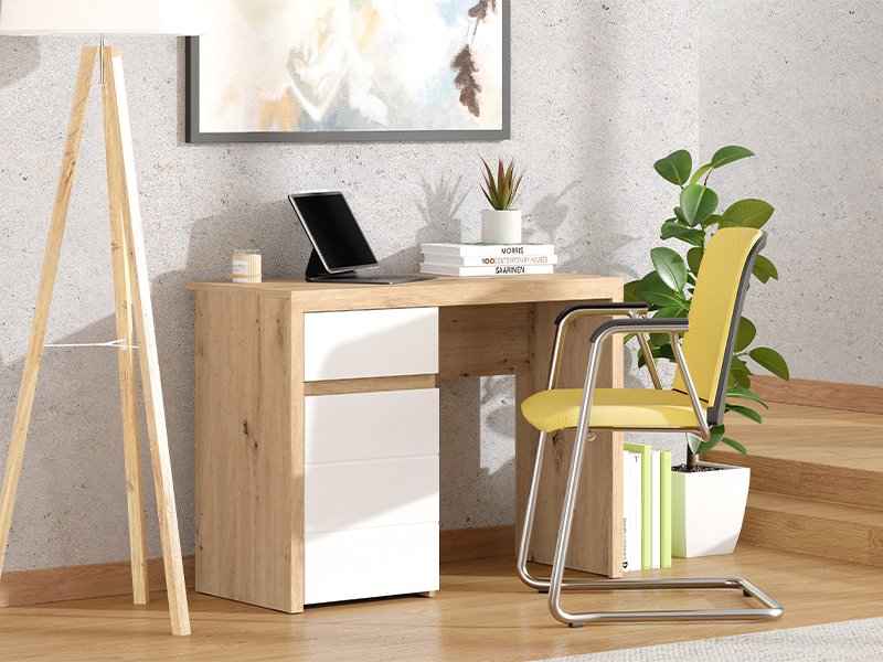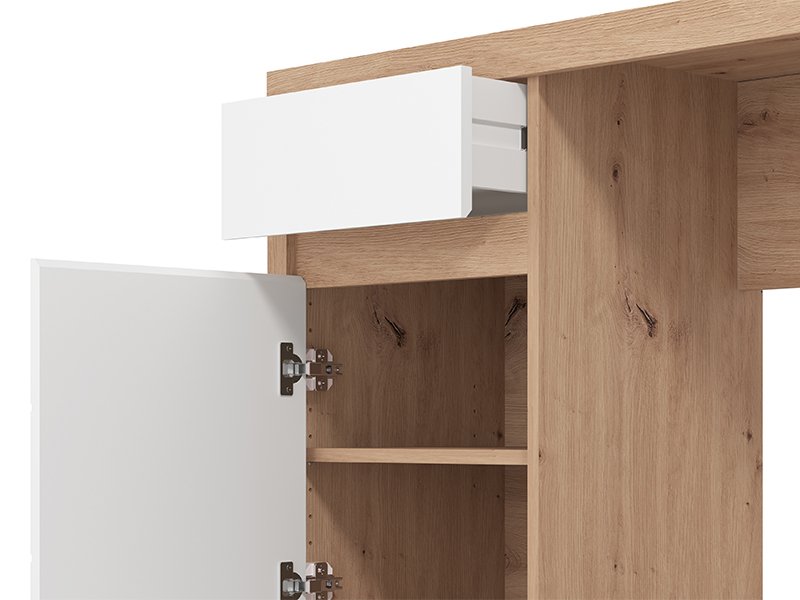 Kompjuter sto DIOFANT 1F1V LP, u kombinaciji artisan hrasta, opak bele i artisan hrast folije, odlikuje se modernim i elegantnim dizajnom sa frontovima bez ručica. Upotrebni prostor čine jedan zatvoreni pregradni deo i jedna fioka, koji omogućavaju pregledno i praktično odlaganje. Zahvaljujući funkcionalnoj organizaciji i estetski usklađenim dekorima, kompjuter sto DIOFANT 1F1V LP predstavlja neizostavan element za uređenje radnog prostora.