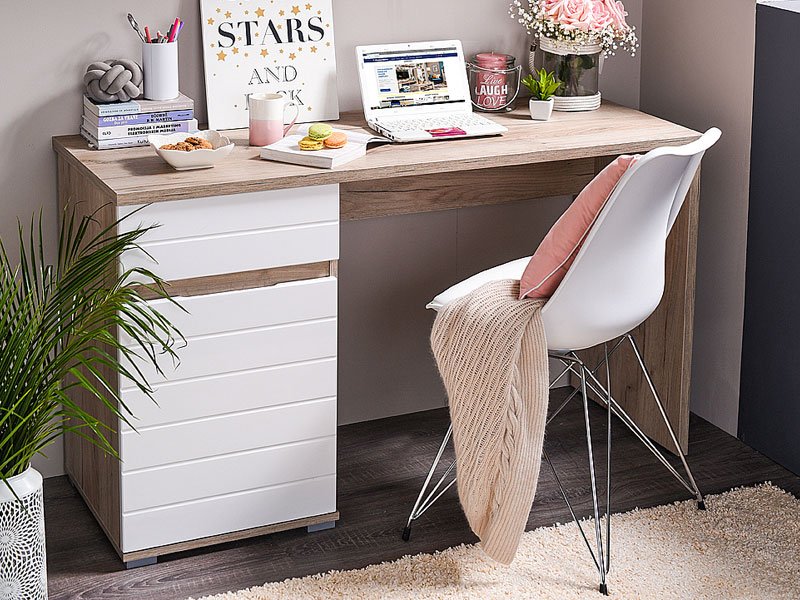 Kompjuter sto ELAN, u sivom hrast i belom lak dezenu, svojim dizajnom i organizacijom upotrebnog prostora idealan je izbor za opremanje radne sobe u kojoj će sve ići u korak sa postizanjem maksimalnih rezultata. Zatvoreno rešenje i praktična fioka donose dovoljno prostora za odlaganje knjiga i najrazličitijih predmeta neophodnih za nesmetani rad.
