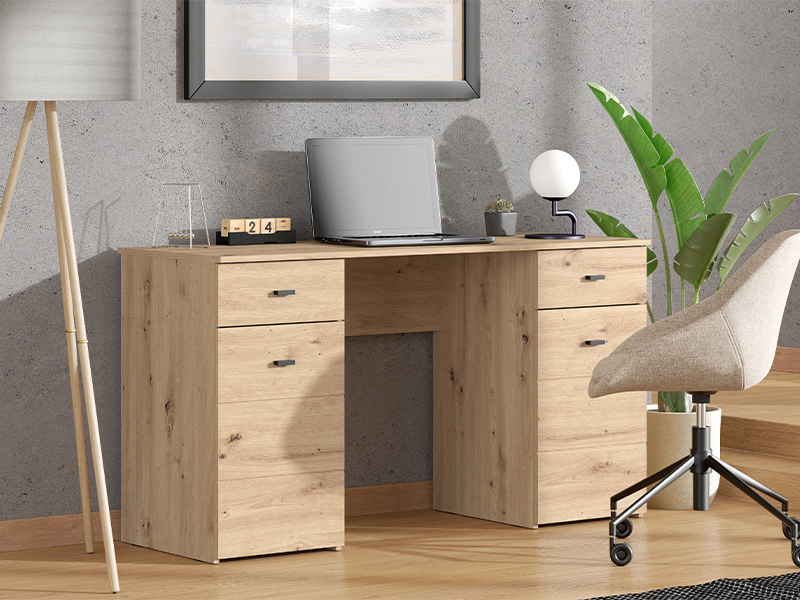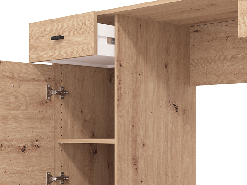 Kompjuter sto KEPLER 2F2V, u artisan hrast dekoru, odlikuje se jasnom i funkcionalnom formom. Ispod radne površine, sa leve i desne strane, upotrebni prostor čine zatvoreni pregradni deo i fioka, koji omogućavaju pregledno i praktično odlaganje. Zahvaljujući kompaktnim dimenzijama i neutralnoj estetici, sto KEPLER 2F2V predstavlja neizostavan element za funkcionalno i pregledno uređenje radnog prostora.