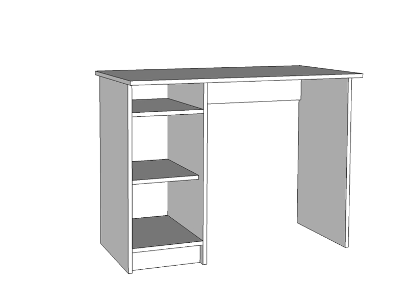 Kompjuter sto REY, u opak belom dezenu, praktično je rešenje za opremanje radnog prostora zahvaljujući skladnom dizajnu i dimenzijama. Ovaj model radnog stola poseduje otvoreni segment i frontalni deo levo pozicioniran sa pregradnom policom.