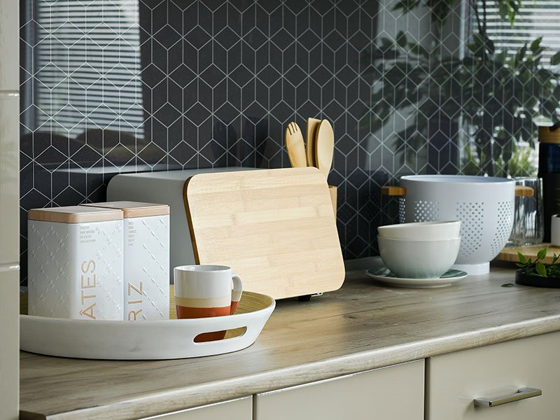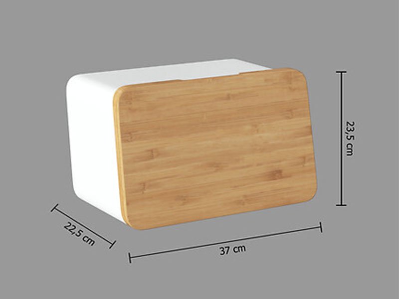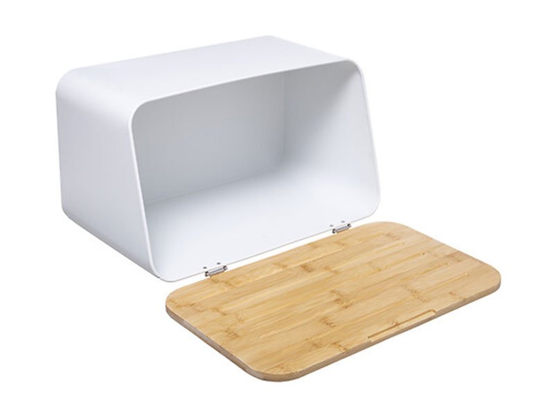 Kutija za hleb sa daskom za sečenje FIVE modernog i minimalističnog dizajna, u kombinaciji bele boje i dekora drveta, savršeno će se uklopiti u svaku kuhinju.