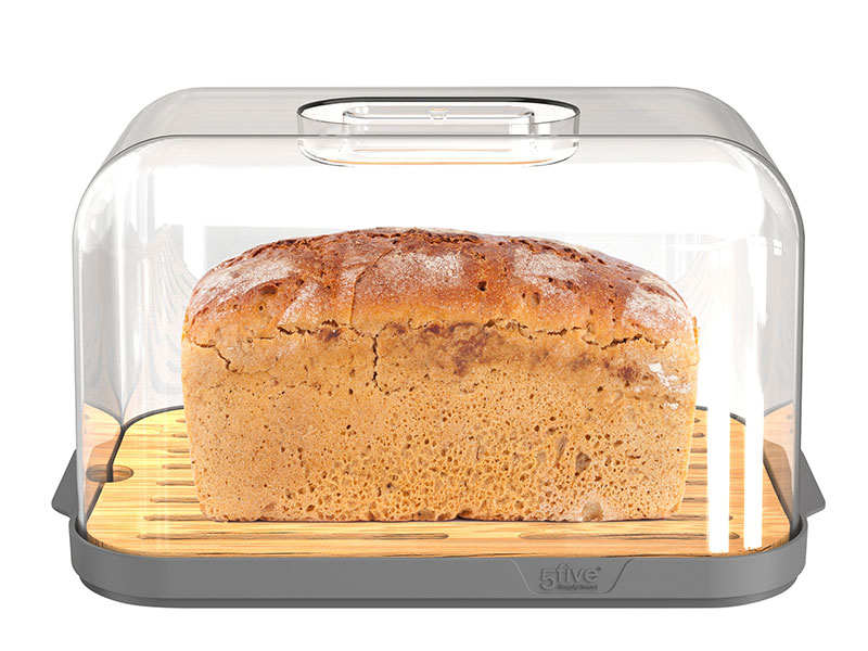 Kutija za hleb sa poklopcem FIVE 29x18x15,9cm održaće hčeb svežim. Podloga je izrađena od bambusa koji je otporan na ogrebotine, pa se može koristiti i kao daska za sečenje. Poklopac je izrađen od polistirena koji zaustavlja prodor vazduha i produžava vreme svežine hleba.