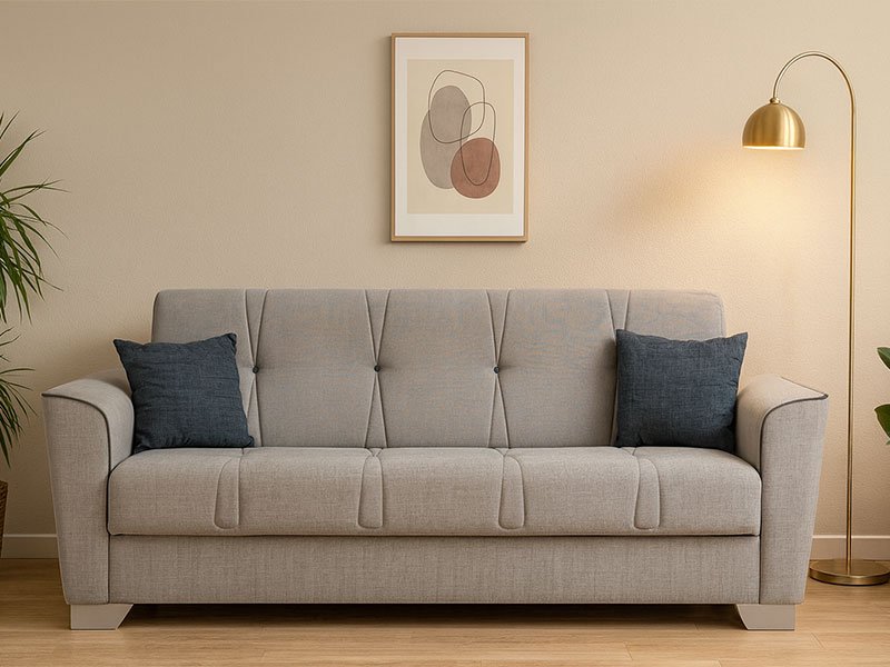 Tačan naziv dezena: sedište / naslon / rukonaslon / mali jastuk štof ecose bela vision light grey sv.siva. Ležaj MARIO idealan je pratilac savremenog tempa života zahvaljujući dizajnu. Uz ovaj model ležaja jednostavno ćete dnevni prostor transformisati u zonu za odmor uz mogućnost pretvaranja u ležaj klik-klak mehanizmom sa površinom za spavanje 112 x 190 cm. Poseduje jezgro od sunđera i funkcionalan prostor za odlaganje posteljine.