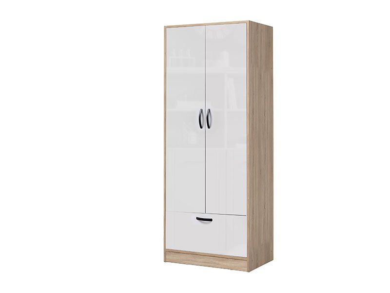 Tačan naziv dezena: korpus iverica sonoma, front iverica bela sjaj. Ormar BETA 2K1F sa garderobnom šipkom, fiokom i pet polica omogućava fukncionalno odlaganje odeće. Racionalna organizacija prostora i klasičan mehanizam ormara BETA 2K1F čini ovaj model fleksibilnim za uklapanje u različite tipove ambijenata.