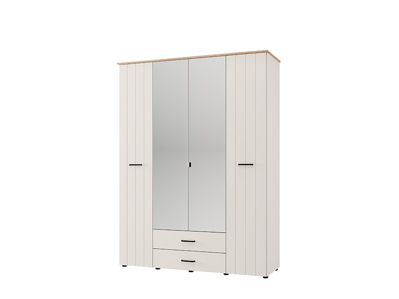 Ormar LAMBETH 4K2F2O h207, izrađen u kombinaciji kašmira i artisan hrast dekora, doprinosi toplom i rustičnom izgledu spavaće sobe, naglašavajući jasno definisanu geometrijsku liniju dizajna i utisnute pruge na frontovima.
