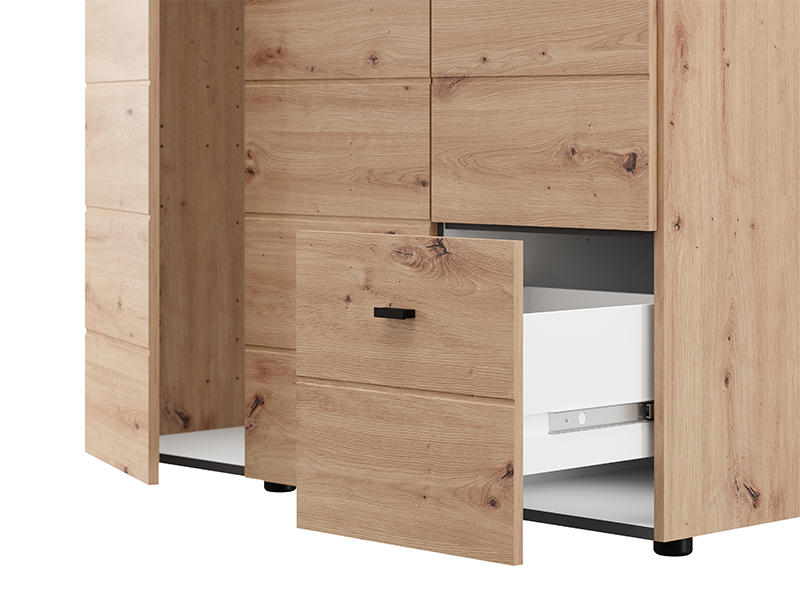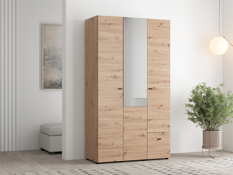 Ormar NEVIS 3K1F1O h207, u artisan hrast dekoru, predstavlja funkcionalno i moderno rešenje za odlaganje garderobe. Upotrebni prostor obuhvata dvokrilni deo sa garderobnom šipkom, jedan pregradni segment i jednu duboku fioku, omogućavajući praktičnu i preglednu organizaciju odeće i dodataka. Postoji mogućnost dodavanja seta polica za još bolju organizaciju unutrašnjeg prostora. Ogledalo dodatno doprinosi funkcionalnosti i vizuelno oplemenjuje prostor. Ormar NEVIS 3K1F1O h207 pripada kolekciji NEVIS i može se kombinovati sa ostalim modelima iz iste linije.