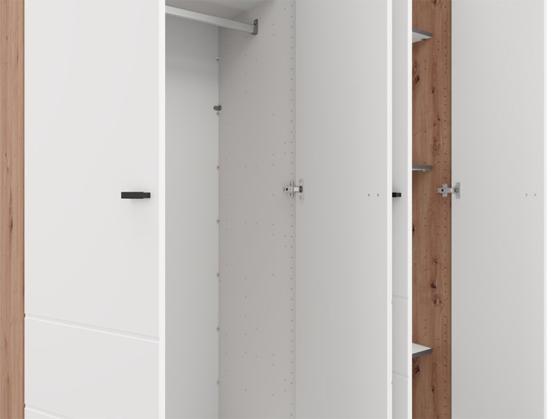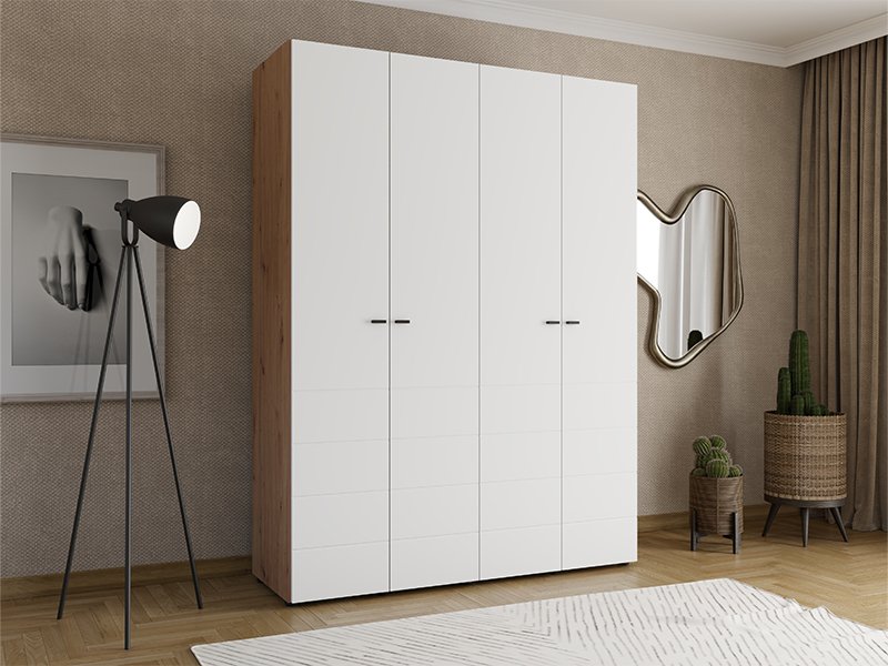 Ormar NEVIS 4K h207, u kombinaciji artisan hrast i opak belog dekora, predstavlja funkcionalno i moderno rešenje za organizaciju garderobe. Upotrebni prostor obuhvata dvokrilni deo sa garderobnom šipkom i dvokrilni deo sa policama, omogućavajući preglednu i praktičnu organizaciju odeće i dodataka. Postoji mogućnost dodavanja seta polica za još efikasnije korišćenje unutrašnjeg prostora. Ormar NEVIS 4K h207 pripada kolekciji NEVIS i može se kombinovati sa ostalim modelima iz iste linije.